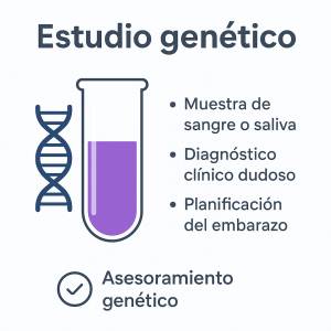 NOTA: Cuando el diagnóstico clínico es evidente (cumple criterios establecidos), no siempre es necesario realizar un estudio genético, salvo si se precisa para planificación familiar u otras decisiones clínicas.