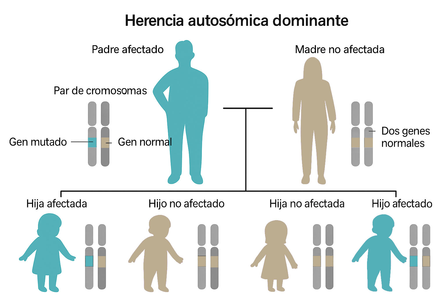 La otra mitad surge sin antecedentes familiares conocidos, debido a mutaciones espontáneas en el ADN.